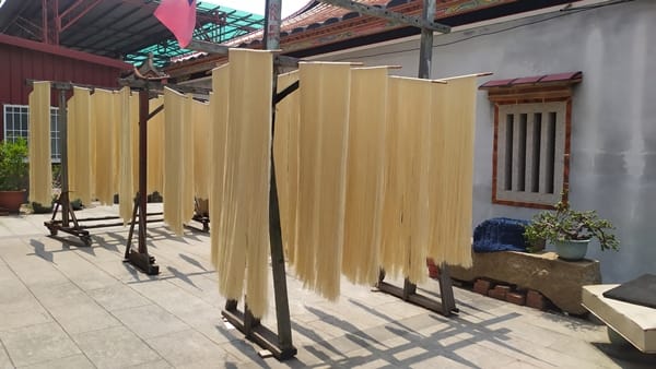 位在路口的長興餅店則依循古法製作的牛軛餅,因為很像耕田器具牛軛所以有了「軋車餅」這個名字。長興餅店拿手的還有麻佬、寸棗糖等,喜愛古早味點心的人可別錯過。金門的麵線沒有加鹽,口味比較淡,不加防腐劑,沿襲傳統的手工風乾和日曬法保存,使得金門麵線吃起來有陽光的味道是非常受歡迎的伴手禮。