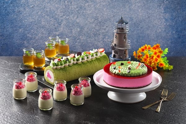 飽餐一頓後,目光轉向甜點餐檯,再度誘人食指大動。蘆薈、仙人掌果及青草茶原料─風茹草,有澎湖三寶之稱,甜點師傅以後二者為原料,取其果汁及茶湯做出極具澎湖特色的甜食,包括仙人掌鮮奶酪、仙人掌奶凍捲、仙人掌慕斯蛋糕、風茹草茶凍、仙人掌麻糬鬆餅,也吃得到澎湖特產的鹹餅和花生酥,其它品項則還有水蜜桃慕斯、波士頓蛋糕、法式布丁、大理石乳酪,以及國人最愛的哈根達斯冰淇淋…等,保證來客吃喝盡興。