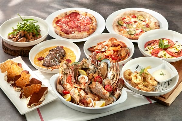 全台資深五星義大利餐廳、頂著拿坡里披薩職人協會認證光環的比薩屋,分眾進攻小資族群,四人成行每人只要999元起享人氣義大利菜暢饗,用餐即贈送一份總價值4,220元的「義式龍蝦海鮮燉鍋」與「提拉米蘇」。以窯烤火爐烘烤出正統的拿坡里手工比薩,濃郁野蕈香的「黑松露蘆筍野菇比薩」、「邱拉爾雙味臘腸比薩」,還有不敗款「經典培根凱薩沙拉」、吮指回味「義式炸雞」與香氣濃郁的「紅酒燉牛頰南瓜奶油燉飯」等美食。