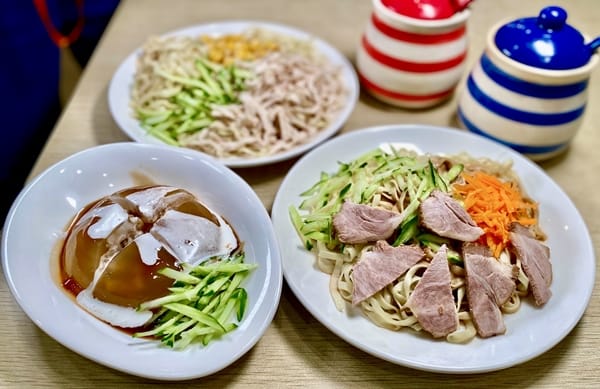 由於北回歸線經過,嘉義市夏季炎熱,白醋涼圓、涼麵也就此誕生。蒸過冰鎮後的肉圓外皮晶瑩剔透、口感軟中帶Q,淋上的醬料是俗稱「白醋」的美乃滋,這種白色醬料和涼麵搭配,也是夢幻組合。人氣店家「諸羅山社涼麵涼圓」以寬扁麵體搭配爽脆大黃瓜,淋上特製的白醋醬、蒜泥、麻醬與醬油,清爽解熱又消暑,是令人難忘的限定料理。