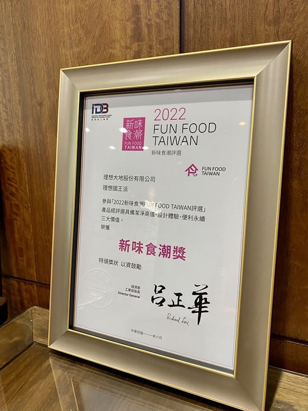 2022新味食品潮FUN FOOD TAIWAN 頒獎典禮於2022年6月22日於南港展覽館二館舉行,理想大地「理想國王派」喜獲「新味食潮獎」。 感謝經濟部工業局與食品工業發展研究所共同推動「新味食潮FUN FOOD TAIWAN」評選活動,強化臺灣食品及國內外行銷推廣,創造「新味食潮」永續新價值。