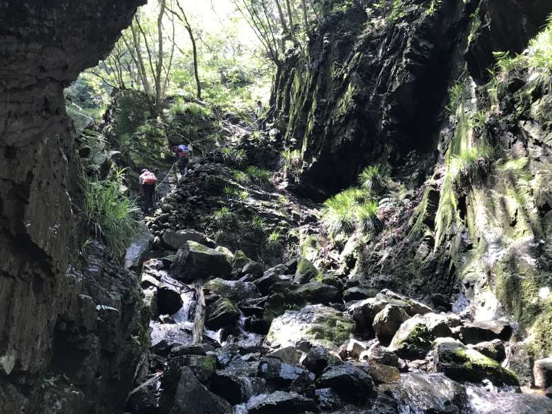 沿著被稱為「GORUJYU」(夾在陡峭的岩壁之間的峽谷)的溪谷,以山頂為目標攀登而上的路途有如電影場景一般,在溯溪途中也會碰上需要緊抓著設置於岩壁上的鐵鍊(日文為「鎖場」)的路段。想試試在神秘的大自然之中盡情享受沉浸於冒險家氛圍的朋友,這裡是最適合的健行景點!