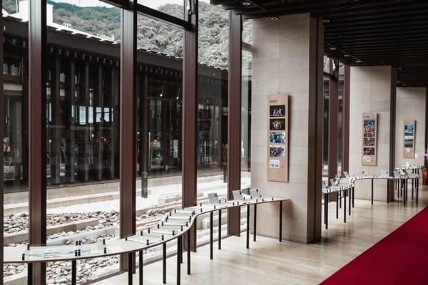 礁溪老爺與黃春明作家以宜蘭結緣、以《九彎十八拐》雜誌共同傳遞文學感動!在出版超過一百輯的今年,特別策劃「九彎十八拐.百輯風華展」,展區分為九彎十八拐專欄、黃春明文學漫畫、國外名家、華文精選、學生作品、紙上藝廊、百輯封面牆與書信寫作等區,除了黃春明的專欄、文學漫畫與撕畫作品外,也選及美國、法國、加拿大、瑞典等國外作品,如海倫凱勒、莫泊桑等,華文作品則選自日本的賴和、呂赫若等至現代作家張曉風、吳晟的作品,總共展出31件文學作品、100本雜誌與8件精選封面故事,滿滿的文學作品邀民眾前來觀賞,此外,也特別與物外設計品牌合作,策劃書信區邀民眾重溫寫作感動,不論是寫封明信片給好久不見的家人,或者寫給黃春明老師,就有機會參加抽獎獲得精選小禮物。