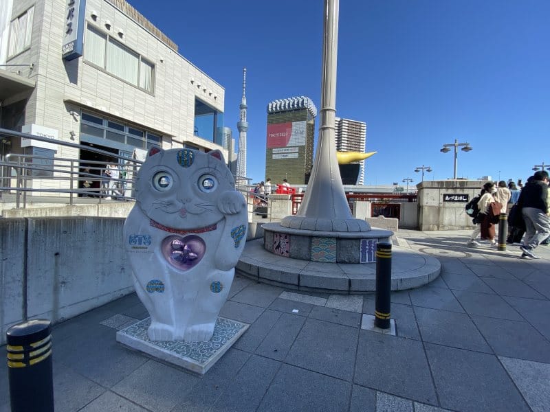 這次要介紹的散步路線起點是位於淺草站旁邊的「吾妻橋」。橋身為鮮豔的朱紅色,和朝日啤酒大樓的金色相互映襯,令人印象深刻。在這想要一覽隅田川也非常方便,經常可以看到有人在橋上拍攝風景。 隅田川附近在春天時會有無數櫻花盛開,夏天時則會舉行著名的煙火大會。河岸旁的隅田公園也經常舉行各種活動,吸引許多人來到這裡遊憩。