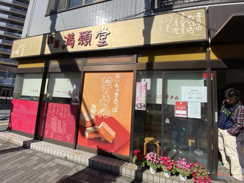 由「TOKYO隅田川 Brewing」往前直走,很快就可以看見「淺草滿願堂」,店內以地瓜製作的和菓子「芋金」(芋きん)相當有名。 早在江戶時期(西元17~19世紀)就存在的「芋金」,是用地瓜製作的羊羹加上餅皮烤製而成,保留了地瓜原本的甘甜,是地瓜愛好者務必嘗試的一款小點心。