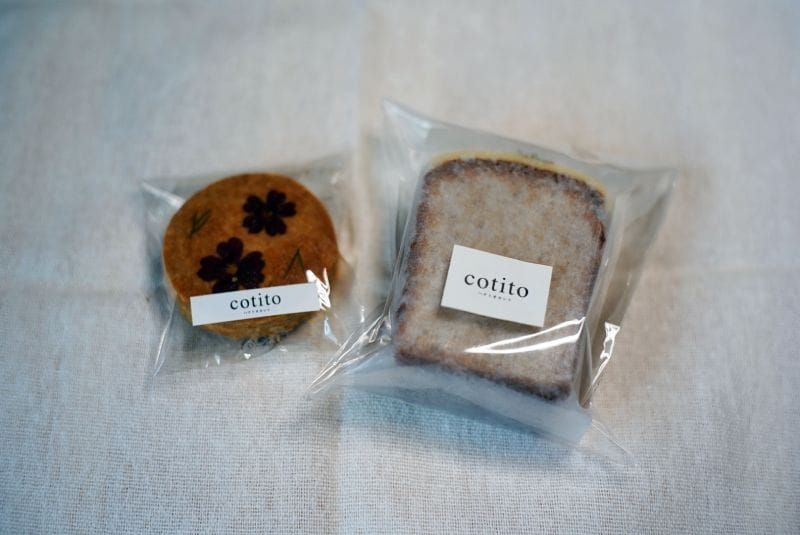 「cotito ハナトオカシト」(cotito HANATOOKASHITO)的「ハナトオカシト」其實就是日文的「花とお菓子と」,指的是「和花和甜點一起」,也正是這間店的寫照。 外觀以水泥牆搭配大片玻璃窗與裝飾的植物,彷彿像是內行人才知道的秘密基地一般,推開木門進到裡頭,可以看到靠窗擺滿花草植物,另一側櫃檯則放滿以花為主題的各種餅乾、蛋糕等。來到這裡不僅可以享用可愛的甜點,也可以買花。