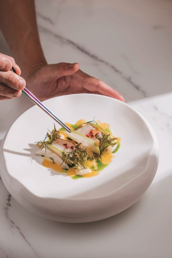 擁有米其林星級餐廳經歷,師承經典法式餐廳的三位主廚,以夏天和南邊為靈感,聯手打造夏季新菜,結合在地食材,妝點鮮明色彩,再融入自製油料,不同層次的香草、辛香入味,變化出盛夏的繽紛熱情,專屬於台灣的法式料理,邀您細品多采多姿的夏日饗宴。TEXT_Aries Huang PHOTO_Ray