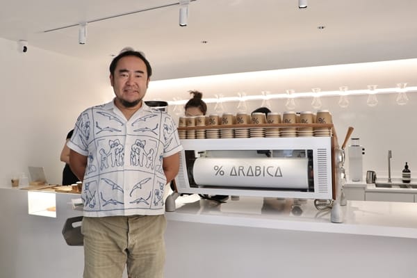 ,在旅行途中吸收了各種不同的文化,體驗過各種生活型態,這個過程他希望找出屬於自己的定位,也就是想要一個簡單的生活,而咖啡之於他就是每一天讓他充滿能量的來源,且為他的生活增添樂趣,因此創辦了「% Arabica 」咖啡品牌。起初,他於夏威夷買下一個咖啡豆莊園,開始生產種植咖啡豆,使用日本最頂級的烘豆機Tornado King,和頂級夢幻義式咖啡機Slayer,並於香港成立全球首間「% Arabica」咖啡店,接者於日本京都開店。創辦人Kenneth Shoji表示:「『% Arabica』咖啡一直以來都積極在海外拓展分店,目前全球已有120家分店,此次選在台灣開店就是看準了台灣不可小覷的咖啡商機,而我們特別選址在台北象山山腳下就是希望來到台灣『% Arabica』咖啡店的消費者,都可以從『% Arabica』咖啡感受到美好的生活樂趣,體驗到專屬於台灣『% Arabica』咖啡的風情。我們預計未來每年都會在台灣開設一家新的店鋪。」
