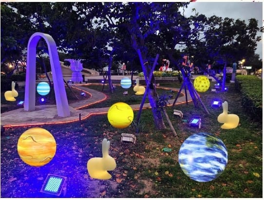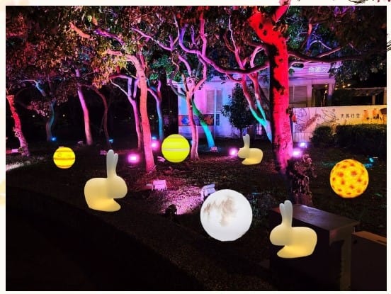 看完煙火秀也別急著離開,現場還有充滿異國風情的「Nite Birds」樂團演出讓您駐足欣賞,木棧道商店街也有人氣美食越南春捲及人氣冰品鳳梨椰奶值得品嘗;此外,LOVE廣場也有配合中秋節設置宇宙與玉兔的夜間景緻燈飾,快來找找宇宙九大行星在哪,月亮跟小白兔在這裡等您來拍照打卡,也順道來敲響廣場的幸福鐘,讓幸福久久喔!