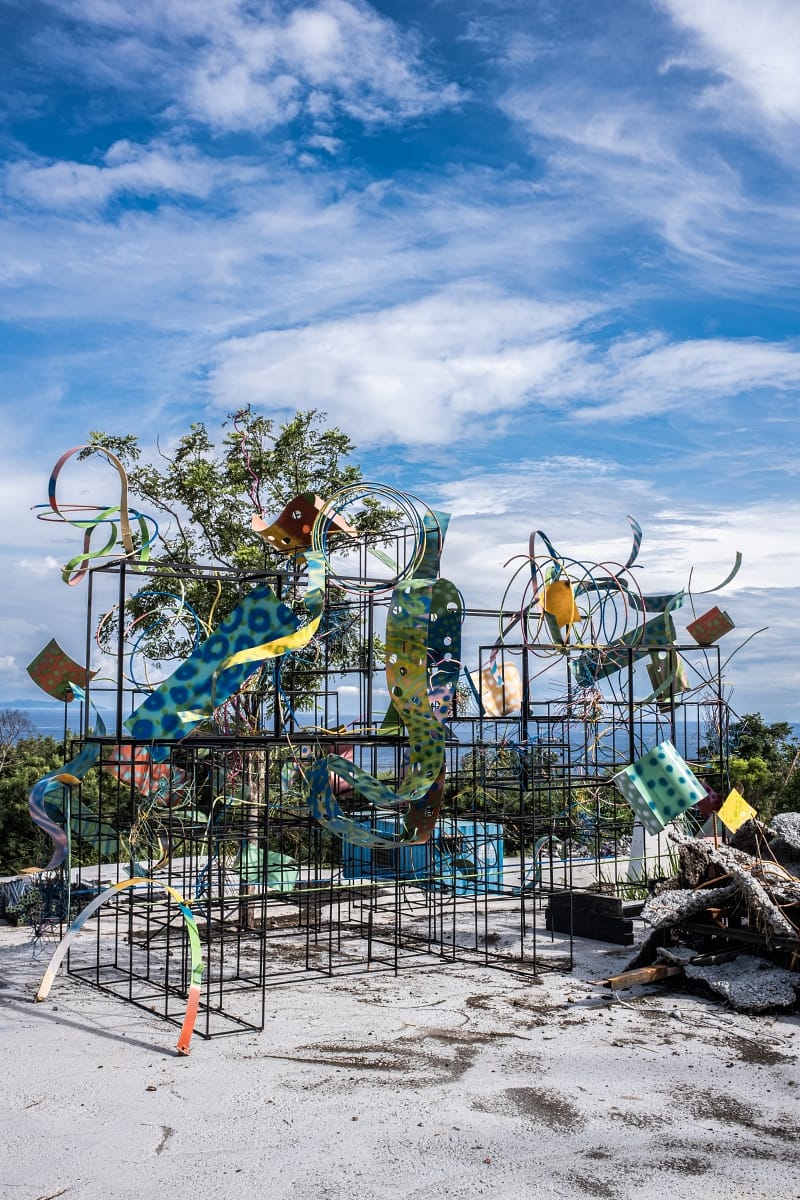 「有時在露臺坐到 7 點半、8 點星星都出來了,我才進去吃晚餐,其實也不是真正在看海,是不是海已經不重要 。」與自我共處 80 年來,外在身分沿途剝落,終於輕盈地得以自由且自在穿梭在天地間,脫離畫室的尺度,拾起周身的建築材料,藝術品自然拔地而起。
