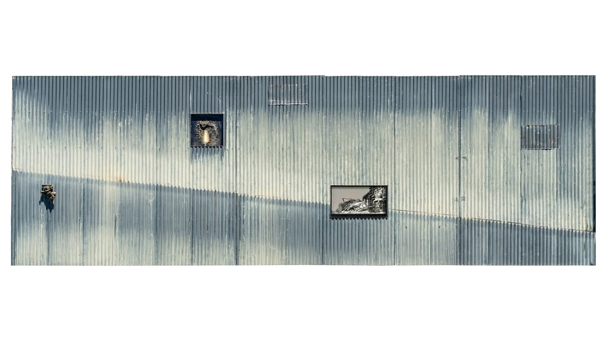 一片藝術終極追求的樂土擴建之際,有人的家園卻瀰漫戰火煙硝,江賢二讀起羅伯·佛洛斯特詩作《火與冰》,自建築廢料與水泥重建起三件同名系列作品,好比舊畫室浪板上,「這條斜線是我走路到陽臺的樓梯,15 年來留下時間的痕跡。」雨水和光線誠實刻寫生命的流動,即便光陰遞進,江賢二從俄烏衝突「回想起幾百年來,人類總有戰爭與破壞。」