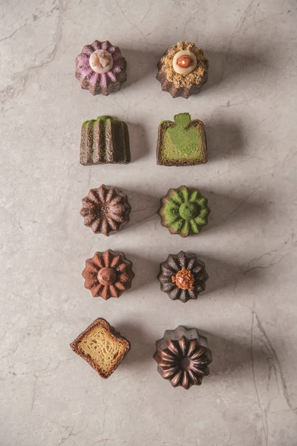 「花磚」專注於單一品項可麗露,也帶來創新的風味,佩君表示雖然有點離經叛道,但希望藉由更多味覺的分享可以拉近人與人之間的距離。日前共推出9種口味,只用馬達加斯加香草籽手作的《經典原味可麗露》,《巧克力可麗露》使用66%的caraïbe製作,帶一點苦甜而不膩口,《憨吉可麗露》優選綿密香甜的金山地瓜,《抹茶可麗露》小山園抹茶內餡加上抹茶甘納許,濃郁茶香雙重享受。《檸檬可麗露》酸甜好滋味,帶有微微檸檬清爽香氣,擁有濃郁牛奶糖內餡的《焦糖可麗露》,選用新鮮大甲芋頭製成的《芋頭可麗露》,鮮甜草莓搭配香醇奶油霜的《草莓可麗露》,嚴選台灣花生,香濃滑順《花生可麗露》。搭配以本土的傳統圖騰裝飾的外包裝,上蓋透明式設計,一眼即可見彷如9朵花綻放,一盒滿足9種味覺饗宴,送禮也很討喜。