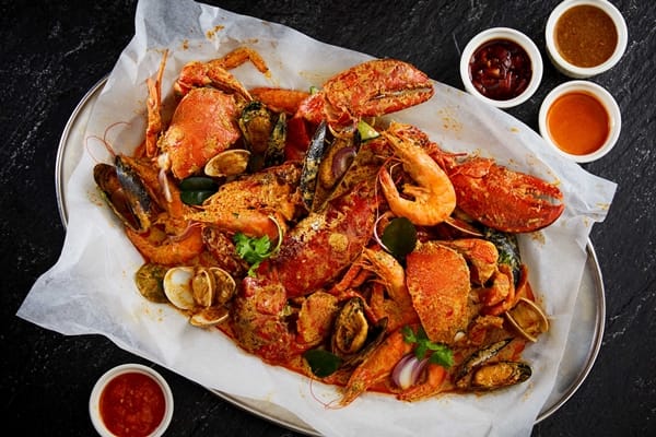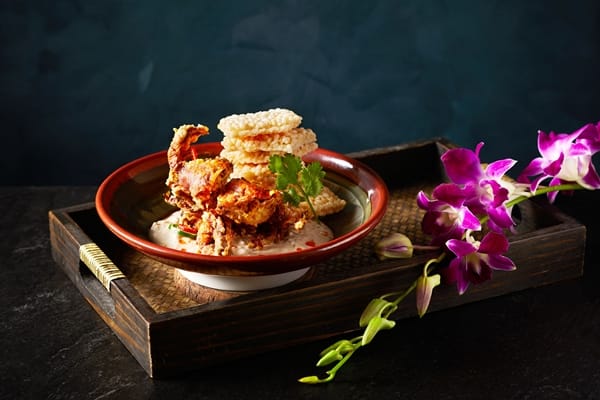 開胃菜的亮點,當屬泰國主廚以老祖母食譜製成的「鹹蛋鮮蝦青木瓜沙拉」,滋味道地,另有風行大馬、極為傳統的「囉渣蔬果沙拉」,是將時令蔬果及酥炸油條,拌入主廚特製蝦醬,鹹鮮微辣,口感爽脆。精彩熱食則網羅了首屈一指的南洋招牌菜,包括泰國的冬蔭海鮮湯麵、香辣牛肉、雞肉瑪莎曼,大馬的沙嗲牛肉和雞肉串、仁當牛肉、海鮮咖哩布丁,新加坡的辣椒蟹佐銀絲卷、醬油燒雞與脆皮豬肉飯,印尼的炸魚佐綜合香料以及越南的和牛河粉,赫赫有名的泰式炒河粉和檳城炒粿條也在每餐輪替供應,讓來客一較高下。此外,平日晚餐和假日還再加碼大馬肉骨茶或是泰國酸辣排骨,原汁原味,十分過癮。
