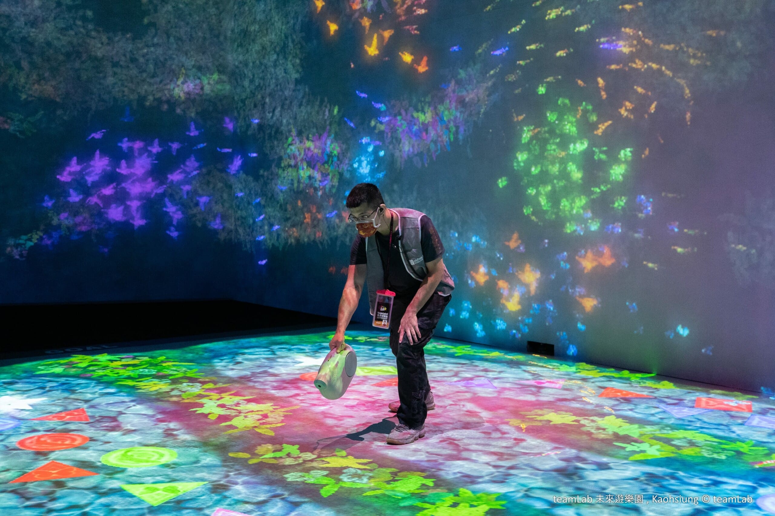 主辦單位聯合數位文創特別分享觀展攻略,建議穿著白色或淺色系服裝來觀展, 因為作品有許多投影,衣服就像畫布一樣,越簡單的顏色越能呈現清晰鮮明的畫面。另外部分區域須脫鞋並穿著棉襪,也請記得參觀前要先將手機或相機充飽電, 把記憶體清出空間,因為一進場就會讓人忍不住瘋狂拍照。展場也備妥防疫措施, 採用天淨極效抗菌液定時清潔消毒,歡迎安心看展。 《teamLab未來遊樂園&與花共生的動物們》 高雄2022