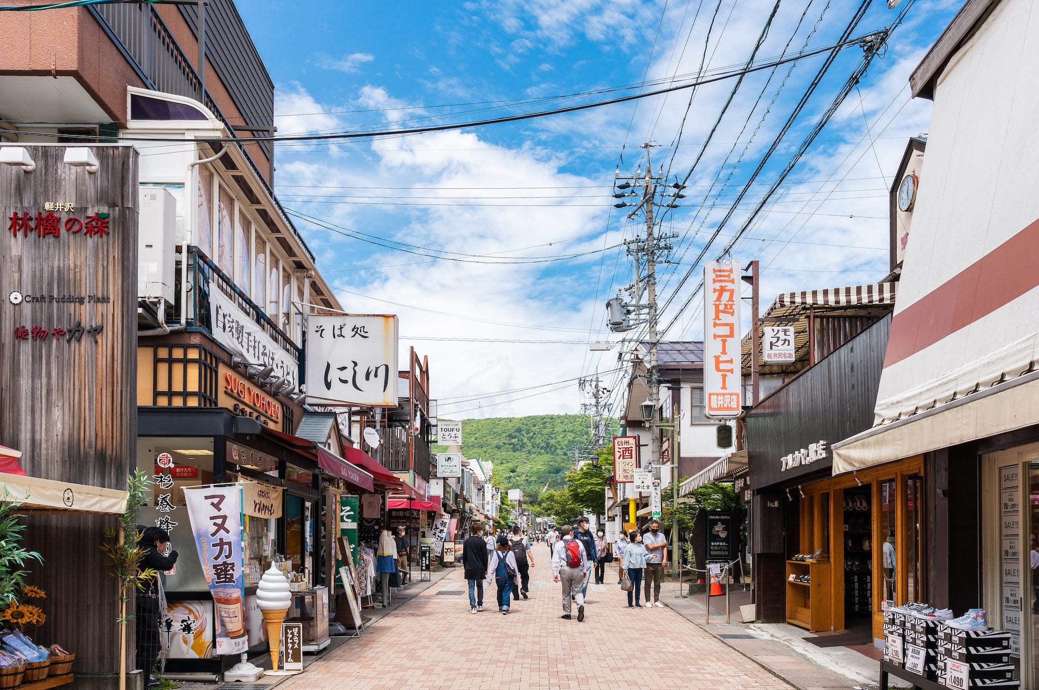 距離輕井澤站搭巴士5分鐘就可以抵達的舊輕井澤銀座通,則是此區最熱鬧的商店街,林立了許多商店、餐廳,包含約翰藍儂熱愛的French Bakery麵包老店、老字號咖啡館丸山珈琲、曾經連續10年獲得世界食品比賽金賞的白樺堂都在此,想要逛特色小店、採買 伴手禮、品嘗一些和風洋食,都可以在此區解決。