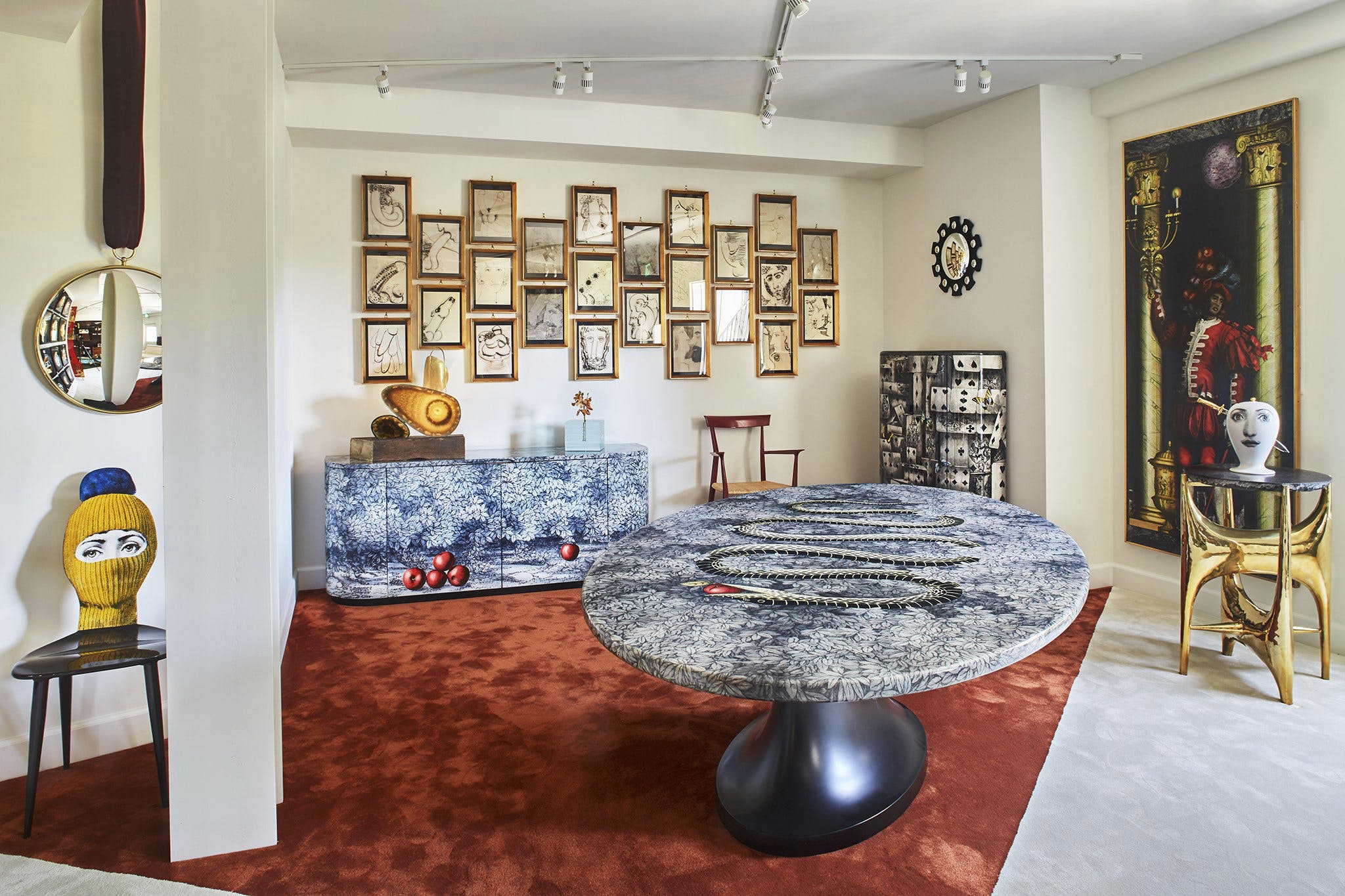 曾經注意過設計家居品牌的人,一定看過Fornasetti的作品,一幅幅女人的畫作,看來怪誕又充滿魅力,藝術家Piero Fornasetti偶然一次在報紙上看見歌劇女伶Lina Cavalieri的照片後傾心不已,以她的模樣創作了《Theme and Variations》系列畫作,超過500幅的作品,卻終生沒有與她本人見過面,而此系列由1952年至今熱度毫不消減,位於米蘭的Fornasetti Store於2016年開幕,鮮豔活潑的色彩大面積交錯使用,超越想像力的拼貼,將Piero Fornasetti腦中 的世界,活靈活現的展演在眼前,包含Vivienne Westwood、Dolce & Gabbana、Elton John都非常熱愛他的作品,這裡與其說是專賣店,其實更像是Piero Fornasetti博物館。