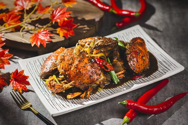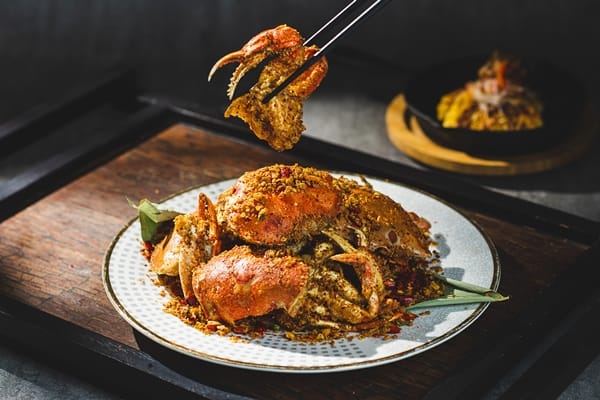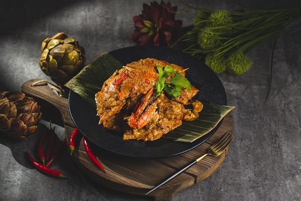 主廚選用台灣近海三點蟹,以微辣帶酸甜的醬汁爆炒,再加入蛋液使其濃稠,讓鮮甜肥美的蟹肉更加多汁飽滿,鮮香撲鼻光看就讓人口水直流,這道聞名國際的新加坡辣椒蟹融合馬來菜的辛辣與中式料理的鮮濃,不僅保留螃蟹原有的鮮甜肉質,帶著辣味的醬汁更是香辣開胃,讓人忍不住一口接一口!