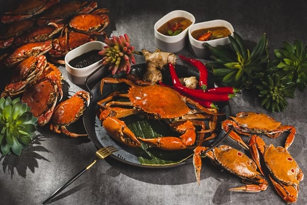 主廚不僅在原本就很豐富的自助餐檯上增加十多道螃蟹料理,為了讓愛蟹饕客盡享當季鮮味,主廚還另外推出加價購鮮蟹料理,只要加價728+10%元,即可享用特別加碼的「沙公三味」,主廚挑選肉多肥美的大沙公,用清蒸的方式鎖住蟹肉的鮮甜Q彈,再佐上主廚特製香辣開胃的獅城辣椒醬、椰香濃郁的泰式咖哩醬以及嗆辣過癮的珍寶胡椒醬,三種不同滋味品嚐沙公絲絲分明的鮮美肉質,令人大呼過癮的品蟹嘉年華,大啖秋蟹就趁現在!