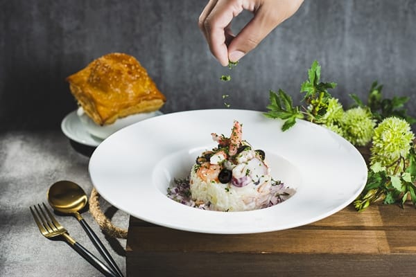 喜愛西式料理的食客,別錯過以經典青醬和白醬展現的精選蟹肉義大利麵與燉飯,主廚用帕瑪森起司、橄欖油、鮮奶油、松子與羅勒葉製成香氣濃郁的青醬,搭配細緻鮮甜的蟹肉與筆管麵,簡單美味。另一道以濃郁白醬料理蟹肉、鮮蝦、花枝等豐富海鮮,製成鮮美濃郁的義大利燉飯,香濃卻不膩口,各式海鮮相互輝映並創造多層次口感,滿滿海味令人齒頰留香。