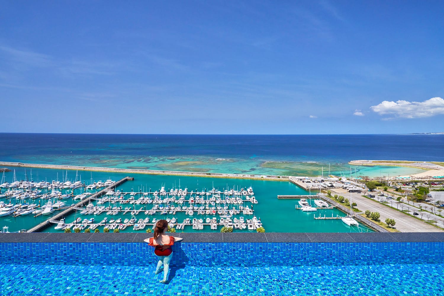 在今年4月才剛開幕,坐擁340間海景客房的沖繩王子飯店,每一間房間都可以眺望大海,飯店內具備24小時營業的餐廳、三溫暖、岩盤浴、SPA,二樓更有超美的無邊際游泳池,人在其中彷彿由空中游入海中,在此絕對可以輕鬆拍出絕世美照!