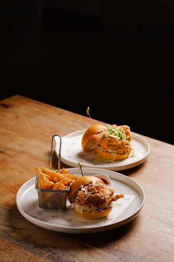 劉緯(Willy)考量大眾口味偏好的轉變,一改美式漢堡以牛肉為主體的作風,提供和風咖哩炸雞及軟殼蟹兩種選擇,其中炸雞選用雞腿替代雞柳,鎖住肉汁,而軟殼蟹裡加入鮭魚卵勾勒出獨特的鮮美甘甜,兩者皆以芥末、美乃滋、海苔粉與大阪燒醬汁為佐料,堆疊出日式居酒屋氛圍。