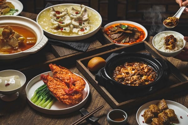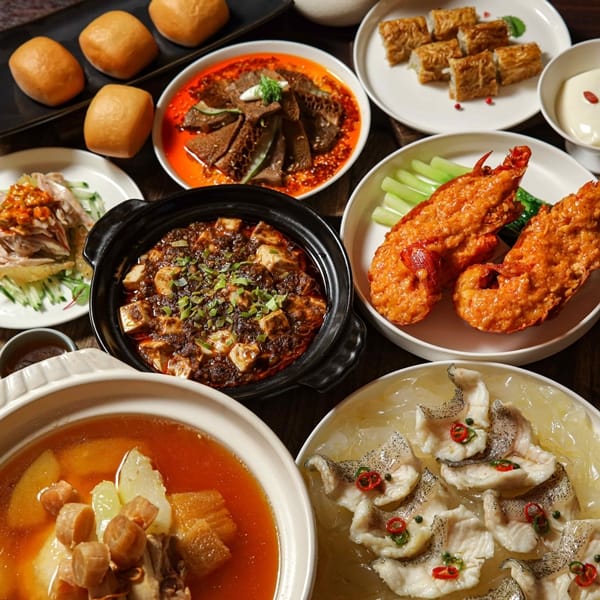 陳建一主廚規劃的菜單中,首推最廣為人知的鐵人麻婆豆腐,主廚嚴選光滑、鮮嫩的豆腐,以特製的豆瓣醬、辣椒粉以及超過15種的辛香醬料調味,小火細心烹調,起鍋前淋上一層辣油增色添味,風靡全日本的人氣滋味,在台灣就可以享用得到。另一道四川乾燒龍蝦是以中式的快炒手法料理,先將龍蝦洗淨剖半,抹上調味醃料後入鍋與蔥、蒜、醬油為主的醬汁拌炒,並加入特調番茄醬創造色澤更豔、香氣更足的美味。
