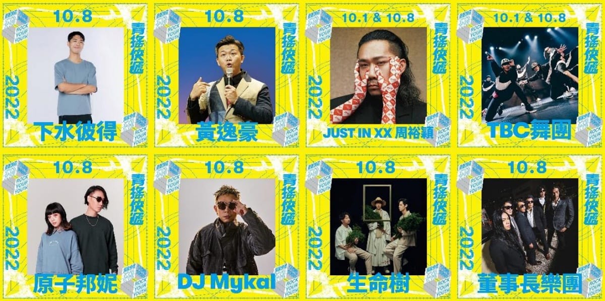10月8日則邀請到單口喜劇演員下水彼得及黃逸豪、原子邦妮 Astro Bunny、DJ MYKAL、生命樹 Tree of Life及董事長樂團 The Chairman等表演團體;現場更有機會品嘗由金葉摸油湯傳承逾一甲子的好手藝,讓賓客在享受表演之餘飲食也無負擔。歡迎大家一同體驗流行時尚、潮流音樂及在地美食,共構繽紛藝術盛宴的同時探索青春的無限可能!