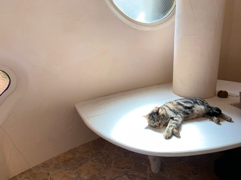 除了普通的矮小桌椅,還有小屋式的空間設計讓遊客可以在裡面享受跟貓咪獨處的時間,不過也是要看主子是否賞臉光臨。前文提及不可以抱貓咪,但如果遇上撒嬌的喵星人主動爬到遊客的膝蓋或肩上,那就「謝主隆恩」,溫柔地跟牠們互動就好囉!