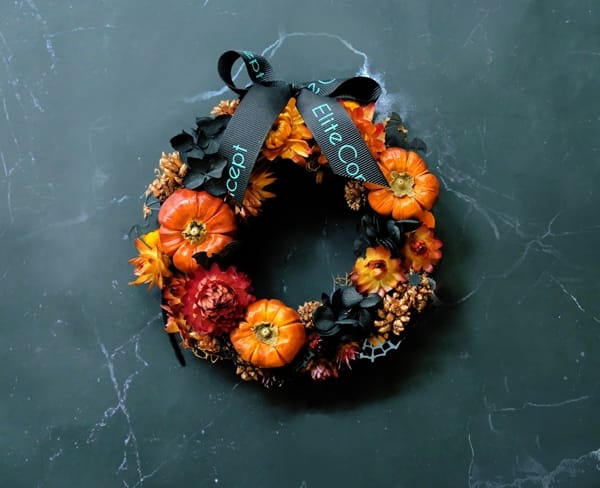 一禮莊園則推出「搗蛋惡魔花圈」永生花禮,花藝師以乾燥南瓜及永生黑繡球花交織出橘黑色調,襯托出繽紛俏皮感受,每份尺寸14公分,售價599元,10月17日起開賣,民眾可透過致電聯繫一禮莊園門市購買,萬聖節搞鬼搗蛋之餘,也別忘記挑選應景布置小物增添節慶氛圍。