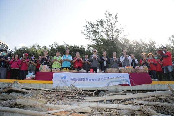 桃園副市長李憲明14日前往桃境之南新屋石滬景觀園區主持「新屋蚵間石滬群暨觀滬平台竣工祈福儀式」,為9座蚵間石滬上香祈福,祈求漁滬文化永存,並親自贈匾感謝桃園石滬協會的辛苦付出,同時授證予9位受訓合格的解說員,歡迎他們加入石滬環境教育的行列,最後與所有貴賓一同登上觀滬平台,欣賞壯盛的新屋石滬景觀。整輯/AH 圖片提供/桃園市政府海岸管理工程處