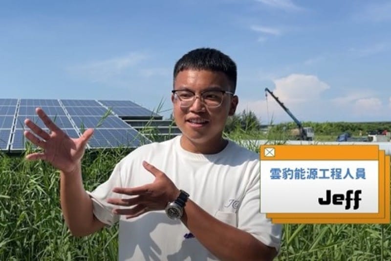 工程師Eric指出自己原本也以為設計案場是在辦公室作業,在雲豹能源才了解設計過程需要到現場看是不是符合預期,很多狀態在辦公室是看不到的;負責漁電共生案場的工程師Jeff 也強調,蓋太陽能板的過程中有許多要和地主溝通協調的工作,與當地的敦親睦鄰也十分重要!影片的最後兩人也給想進入綠能產業工作的人一句話:綠能是現在全世界的推廣趨勢,能夠參與對未來整個環境生態的貢獻都很大,或許本身不是綠能背景出身,但只要抱持著做就對了的心態!趙總經理更向求職者喊話,雲豹能源無論是在辦公室或現場還有很多職缺,歡迎有志者加入!