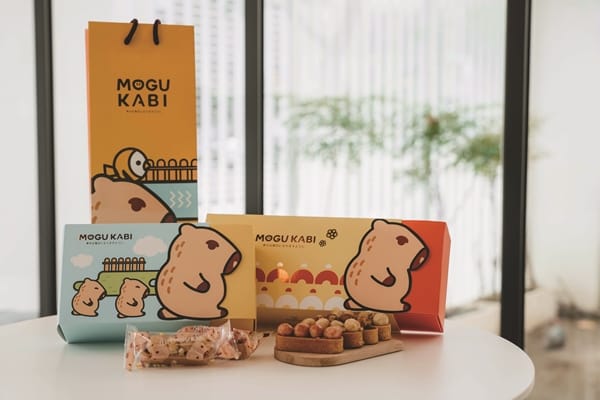 每一個夏威夷豆塔都採用獨立包裝防止損壞,內附脫氧劑可防止食物氧化、變質。「MOGU KABI豆塔專賣店」為外帶甜點店,伴手禮盒包裝以Q版水豚為主角,帶有童趣風、相當討喜,兩款豆塔禮盒有8入及12入裝盒內包含四種各具特色的口味。淋上濃郁黑糖的《黑糖豆塔》在口中瀰漫甜香溫潤甘味,《牛奶糖豆塔》融入香濃牛奶糖,喚醒兒時記憶,《楓糖豆塔》獨特風味的楓糖,更襯托夏威夷豆的堅果香氣,再以杏仁片、核桃果點綴,更增酥脆口感。《莓果豆塔》加入帶有蔓越莓乾及覆盆子脆粒,為豆塔增添多層次微酸滋味,一口咬下,聽得見清脆的喀喀聲響,讓人忍不住一個接一個。