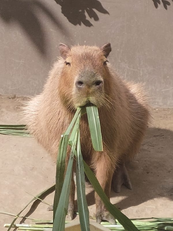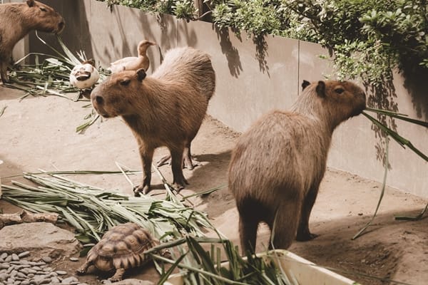 店內全天候播放水豚娜比、貝卡、安安、平平的介紹影片,店家也歡迎即使不消費也可以進店內和小動物打招呼,希望水豚店長們每天吃飽睡飽,悠閒慵懶的放空模樣,讓大家在繁忙日程中也能放鬆紓壓,帶來今日好心情。