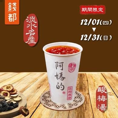 吃完火熱涮刷鍋再來杯沁涼阿嬤酸梅湯,解膩解油超過癮!錢都日式涮涮鍋首次聯名淡水名店「阿媽的酸梅湯」,讓客人來吃鍋也能享受到這間淡水名產美食,尤其在在吃完整套涮涮鍋肚子正撐得飽足時刻,來杯酸V滋味助消化,消費者來多嗑個幾杯就回本,這鍋有夠划算!(期間限定12/1~12/31)