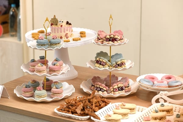 品牌創始人蘇歆媛是甜點烘培專家,更是宇宙級好主子,家中 6 隻貓、2 隻狗就是她的創作靈感。因為喜歡看毛孩瘋狂消滅美食的模樣,又擔心吃的不健康,於是親自挑選食材,手做各式造型鮮食給家裡狗狗貓貓吃,漸漸創造出愈來愈多視覺、味覺、營養兼具的寵物鮮食。從西式的馬卡龍、甜甜圈、達克瓦茲,甚至日式的鯛魚燒,還有各種方便攜帶外出的咔滋脆餅,都是蘇歆媛對毛孩滿滿的愛:「放飯食間每一道點 心,都是我親自開發製作。想像著每個毛寶貝吃得津津有味的模樣,心頭就湧起滿滿的幸福 感,我相信每個寵物主人都是如此,看著毛孩開心地享受美食,再苦再累都能瞬間被療癒!」