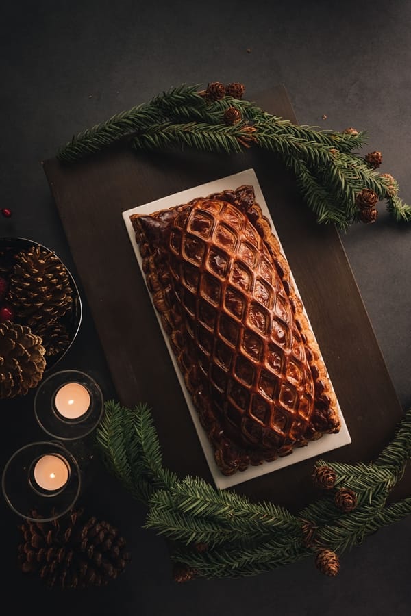 以粵式脆皮作法烘烤,加入獨家法式香料,冰冷熟成吹皮再進烤箱使用72度慢烤,再二次高溫烘烤至脆皮,最後使用中式油淋手法,讓饕客外帶回家也能享用極酥脆、鮮嫩多汁的口感。