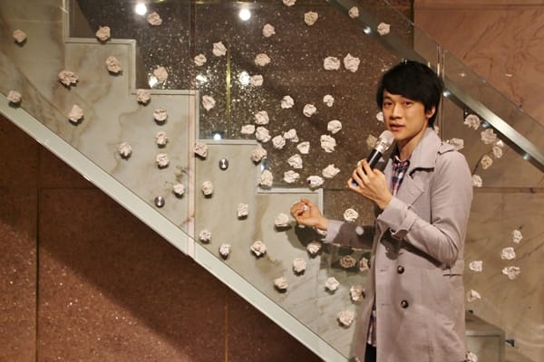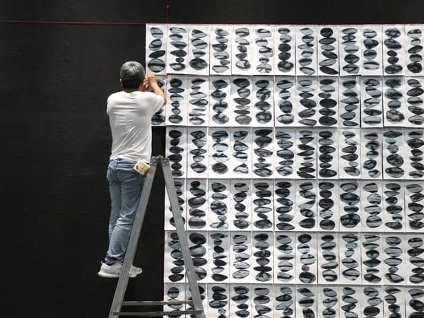 (↑彭賢祥布展。作品名稱:三千石—潮生。)