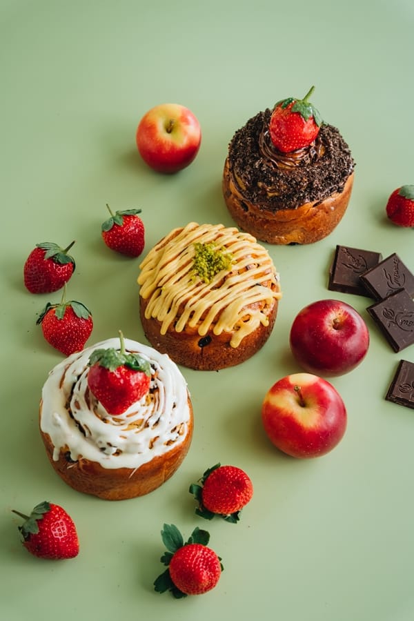 「黑巧OREO草莓奶油捲」在奶油捲上鋪滿53%黑巧克力與OREO碎片,打造多重口感享受,精準拿捏不膩口的甜度,讓巧克力控愛不釋手。「白巧草莓天使奶油捲」則是抹上白巧克力醬並在最上層以新鮮大湖草莓點綴,香甜濃郁,外型令人一見傾心,是一上桌就讓人想拍照留念的視覺系甜品。還有「蘋果卡士達奶油捲」選用日本富士蘋果製作蘋果奶油醬,風味清爽不甜膩,淋在奶油捲上也是視覺與味蕾的饗宴。