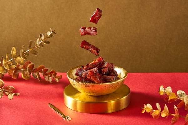 另外,厚切蜜汁豬肉乾則是肉食族的最愛,飯店特選台灣本土豬,以繁複的慢火來培炒入味,加入獨家蜜汁滷製而成,搭配厚切刀工,口感Q彈有嚼勁,絕對是讓人驚豔的五星美味。紅烏龍牛軋糖是飯店精心打造專屬於新春節慶的牛軋糖,特選台東紅烏龍茶葉為基底,以完美比例加入牛軋糖的配方裡,清新茶香與濃郁奶香的口感,多層次的美妙味覺讓人難忘。
