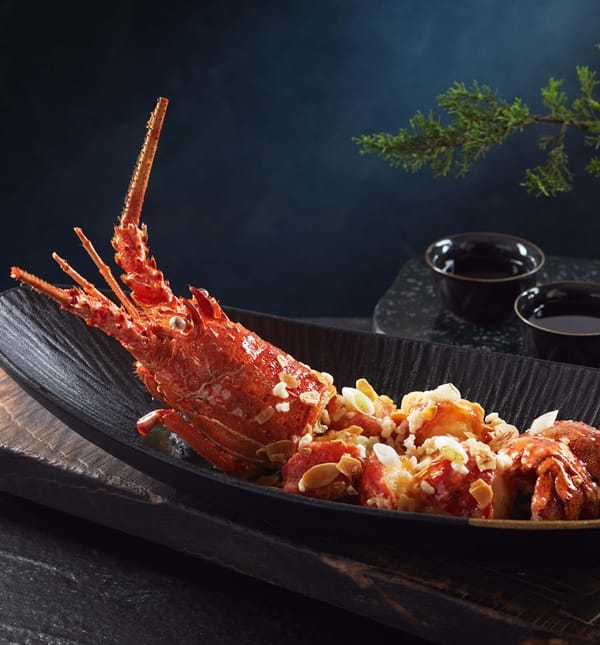 夏宮招牌菜跨海而來,也是主廚的拿手菜!工法有序,分秒不差,九分熟出鍋,送抵餐桌正是十分剛好。珍珠龍蝦整隻斬件,拍上生粉,以猛油炸至七分熟撈起;再起鍋,牛油炒香洋蔥和青蔥,加入上湯,便下炸過的龍蝦,加蓋焗煮,掌握湯汁收濃、起膠時分,撒下現烤的杏仁片和現炸的酥鬆脆米,盛盤上桌。龍蝦鮮嫩彈牙,輔料裹了湯汁,香脆甜層次分明,引人入勝!
