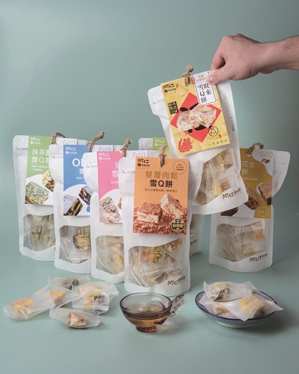同樣純手工現做的雪Q餅是將牛奶餅乾與餡料融合,切成小巧3×3正方形尺寸、香酥鬆軟,也是「阿仁牛軋餅」的熱銷系列商品。多樣口味包括《招牌雪Q餅》蔓越莓口味、香氣濃郁,還有蛋奶素可選,還有讓人一個接一個的《OREO雪Q餅》,抹茶控最愛的《抹茶腰果雪Q餅》,濃純香的《花生雪Q餅》,季節限定的《旺來雪Q餅》也是選用高雄金鑽鳳梨乾,多層次的酸V口感。今年更獨家研發耗時三個月的《雙層肉鬆雪Q餅》,使用彰化在地以胡蘿蔔為主飼養長大的豬,新鮮豬肉後腿肉製成,肉鬆手工慢火翻炒、鹹香酥脆好滋味,一吃好驚豔。