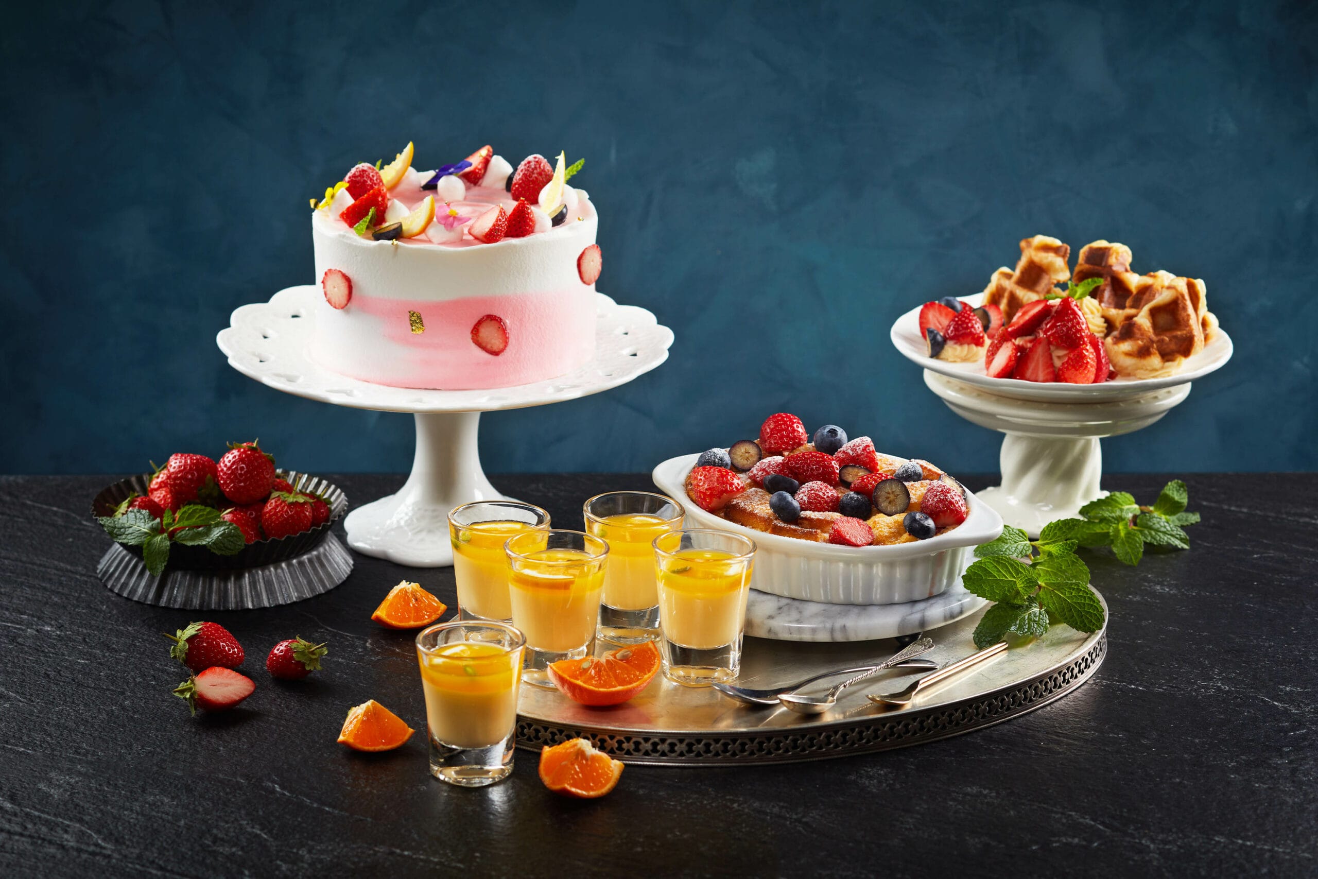 春光乍現,紅黃耀眼的甜點很是吸睛,像是橙意滿滿的橘子布丁,不惜成本的草莓奶油蛋糕、香烤草莓麵包布丁、草莓可頌鬆餅,還有琳琅滿目的抹茶奶酪、大理石起士蛋糕、焦糖巧克力慕斯、香草泡芙、莓果提拉米蘇、波士頓蛋糕…等,加上極受歡迎的哈根達斯和新北唯一供應的EliubiS瑞士頂級霜淇淋,全都魅力無窮,誘人一親芳澤!