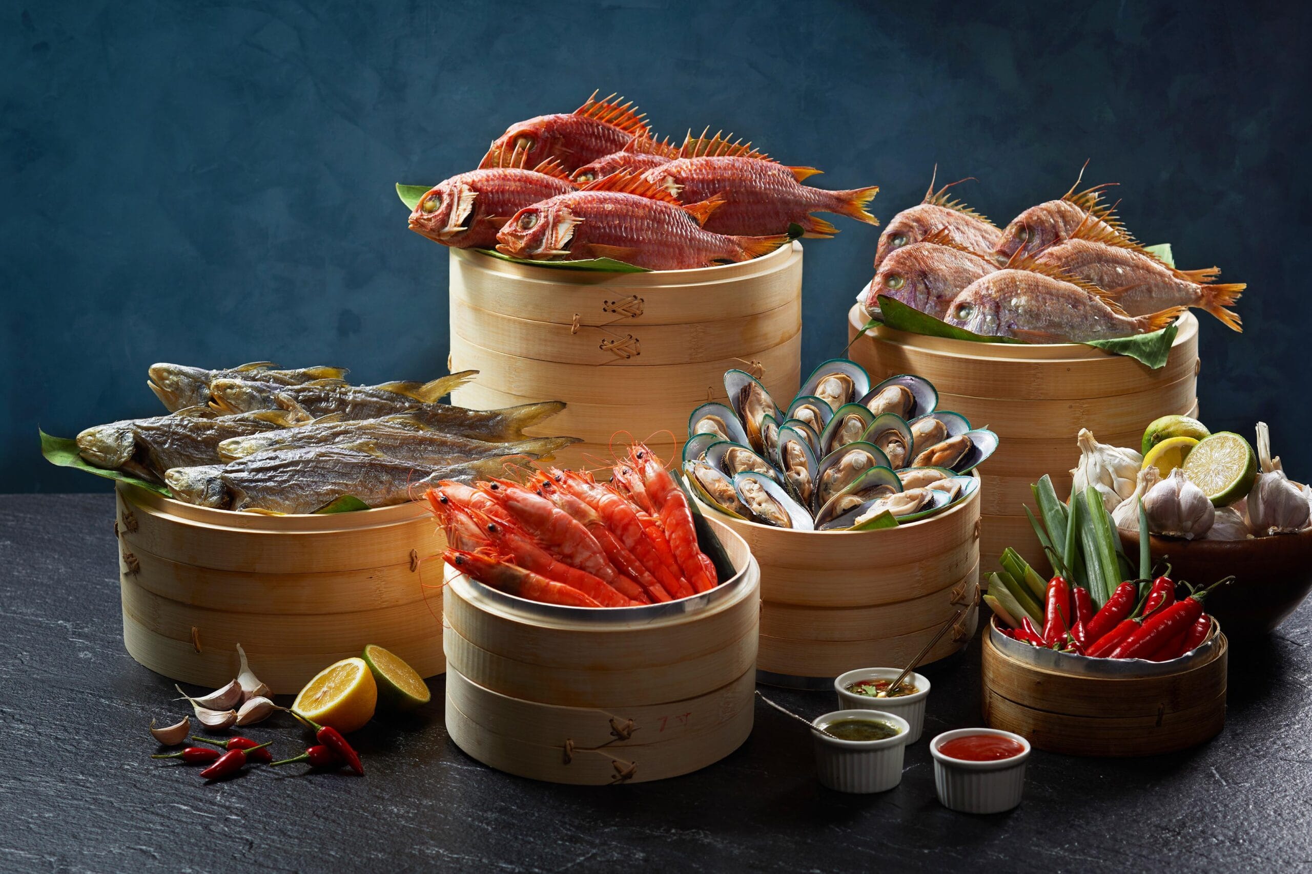 擁有國際五星飯店多年資歷的主廚王國威表示,此時的野生海魚包括赤鯮、盤仔魚、午仔魚、紅肉欉、金鱗魚、圓瓜魚、帕頭仔、紅尾冬…等,漁船捕撈後舖上碎冰,一上岸便送往餐廳,主廚便以當天到貨的三款現流海魚,以現點現蒸的方式,呈現魚肉最為細嫩鮮甜的原始風味!此一蒸籠區還有清蒸白蝦和淡菜,全數海鮮皆可額外搭配自製樹子醬提味,甘美激盪舌尖,真是盡興!