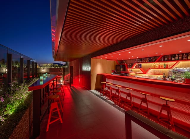以鄒族語「’aveoveoyu(意:我心充滿喜悅)」命名的’aveoveoyu酒吧同時正式營運,火紅色系的吧台與座位區,夜晚在燈光的投射下更顯耀眼。’aveoveoyu酒吧提供多款酒精與無酒精飲品,同時也是阿里山地區唯一的高空露天酒吧,砌一壺阿里山高山茶、沖一杯阿里山咖啡,伴隨著迷霧、雲海、晚霞或是無垠星光,最浪漫的氛圍油然而生。