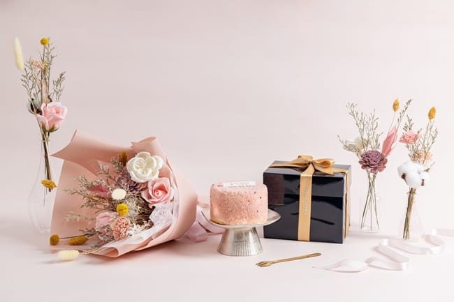 使用棉花、索拉花、兔尾草、佳那利、米香花近十種不凋葉材,融入粉紅夢幻的浪漫元素,搭配上《法蕾•熊》冬季限定的莓果生乳舒芙蕾蛋糕,酸酸甜甜猶如初戀滋味的草莓,是每年冬季必吃。夢幻粉嫩色的舒芙蕾蛋糕,使用日本北海道十勝鮮乳、綜合莓果餡,酸甜草莓和生乳舒芙蕾光是拿在手上最讓人心情大好,搭配上超粉嫩的夢幻色花禮,絕對攻陷女孩的心!