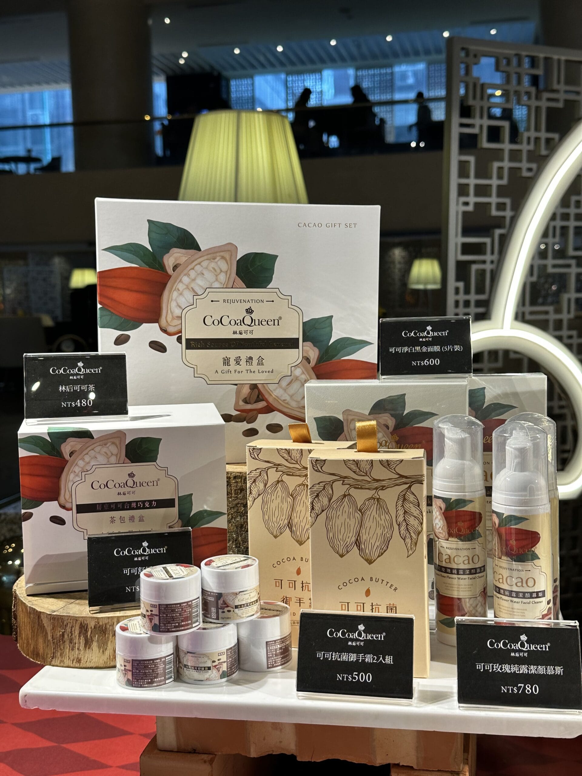 致力「將台灣最好的帶給世界」的台北晶華酒店,此次更邀請到來自台灣屏東的在地品牌—林后可可,帶來風味清亮帶微微果酸的可可茶,及以販售用可可脂打造的各式保養品和彩妝。創辦人洪誼靜提到,屏東優良的氣候環境與加工技術,驅使台灣得以製造出全世界加工里程最短的「Tree to Bar」巧克力。除了可可果裡頭的籽變成豆仁可以做成巧克力外,皮跟籽藉由敲打將香氣和風味萃取出來,就變成了可可茶;外殼則可以經由萃取其中的可可多酚成分作為美妝面膜,對美白和曬後的修復都有很好的成效。將種子乾燥,烘烤和壓榨後,從豆中提取植物脂肪,即可獲得可可脂,由於可可脂會在皮膚溫度下融化,與身體接觸時能提供肌膚深度的滋潤,因此常被用作潤唇膏、舒緩膏等產品。藉由推廣零浪費的各式可可商品,期待能讓世界注意到台灣的可可產業,也讓台灣人更加認識可可這項經濟作物。