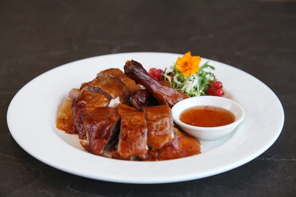 講到頂級粵式烤鴨,聞名遐邇的粵亮廣式料理靓皮烤鴨絕對佔有一席之地,嚴選3公斤的櫻桃鴨,堅持傳統古法添料、醃製、風乾、上醋水、烘烤、淋油等多道繁複程序料理,再以獨家百萬級旋風烤箱恆溫78度烘烤,出爐的烤鴨受熱均勻,每吋鴨皮都酥脆多汁,沾取師傅手工熬煮的梅子酒及蘋果汁所調製的招牌甜麵醬與雜糧餅皮,一口咬下酸甜適口,是許多老饕必吃的招牌美味,而本次「靓皮烤鴨」亦提供客家風味的蜂蜜金桔醬,以及運用14種香料調製的麻辣醬拌入酸菜、橙汁醃漬蘿蔔、爽脆小黃瓜,有別於普通片鴨口味單一,粵亮廣式料理的靓皮烤鴨共附上兩款醬汁、三種配料,帶領賓客體驗鹹、麻、香、酸、甜等多重組合滋味。