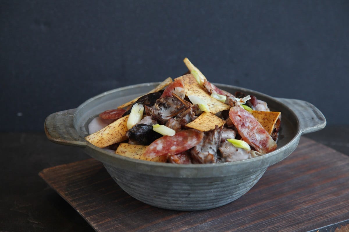 除了招牌靓皮烤鴨之外,「鴨香寶五品」套餐搭配的料理四吃還有「芋香臘味鴨架煲」以酥炸的芋頭與油炸鴨架、港式臘味一併煲煮,再加入甜香芋泥使其包覆食材,芋香濃郁而綿密的口感,甜鹹交織令人欲罷不能。「桂花冰梅醬鴨腿」取用油脂豐富、肉質柔軟的烤鴨腿,佐以南港區花桂花調製冰梅醬,結合花香與甜鹹締造層次,滋味細膩雅致。
