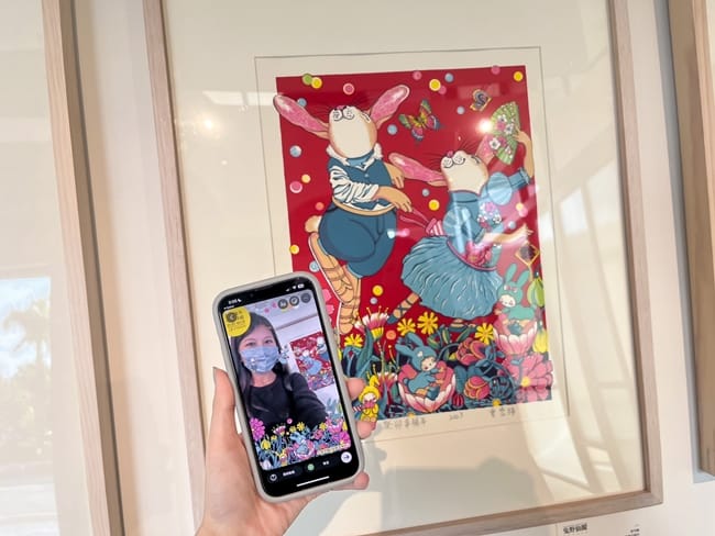 其中獲得首獎的6件作品及特別委託創作的2件作品,除在國美館展出外,還跳出美術館地域框架,首次將這8件作品與館外三處場域合作,以科技體驗獨特方式串連展出。台中大毅老爺行旅擔任此次館外展的策畫工作,特別邀請知名品牌-兆兆茶苑及留白計畫一同加入此次展出合作,共計展出8幅作品,包含6幅首獎及林昌德的《瑞兎迎春》與盧明德的《金銀雙喜》2幅委託藝術家創作的作品。在這三處展出之作品更加入AR數位科技的應用,旅人利用手機掃描畫作後就可看到畫作中的角色靈活的動起來,還會與你一同互動傳遞著新年的祝福。這樣延伸規劃也呼應著本次展覽主題「兔野仙蹤」,讓藝術呈現可以跳出框架,住進旅店、品味茶香,在城市中蹦跳玩樂,跟著兔子的腳步,在多元空間裡以不同情境及氛圍欣賞畫作!