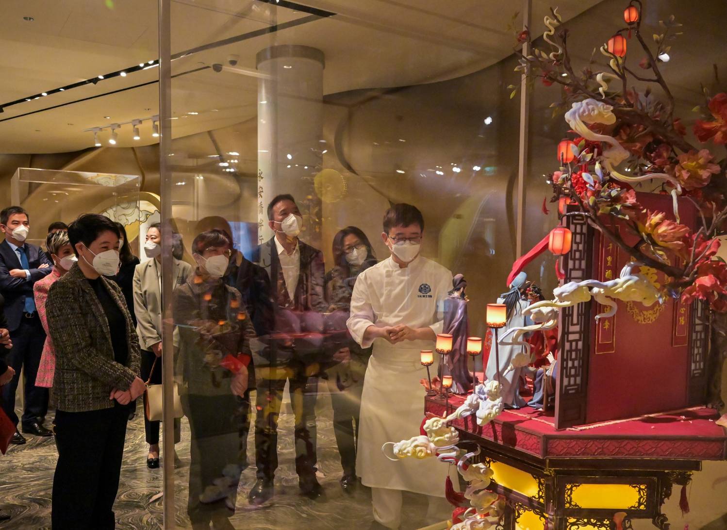 「殿『糖』雕塑藝術特展」開幕儀式今天(4日)假美獅美高梅舉行,同時以線上線下形式舉行,全國、香港及澳門共15個平台上聯播,逾170萬人次觀看參與。出席開幕儀式的主禮嘉賓包括:中央人民政府駐澳門特別行政區聯絡辦公室宣傳文化部處長白冰、旅遊局局長文綺華、文化局局長梁惠敏、美高梅總裁、戰略及首席財務官馮小峰、中式翻糖手藝人周毅,以及美高梅文化藝術副總裁郭蕙心。